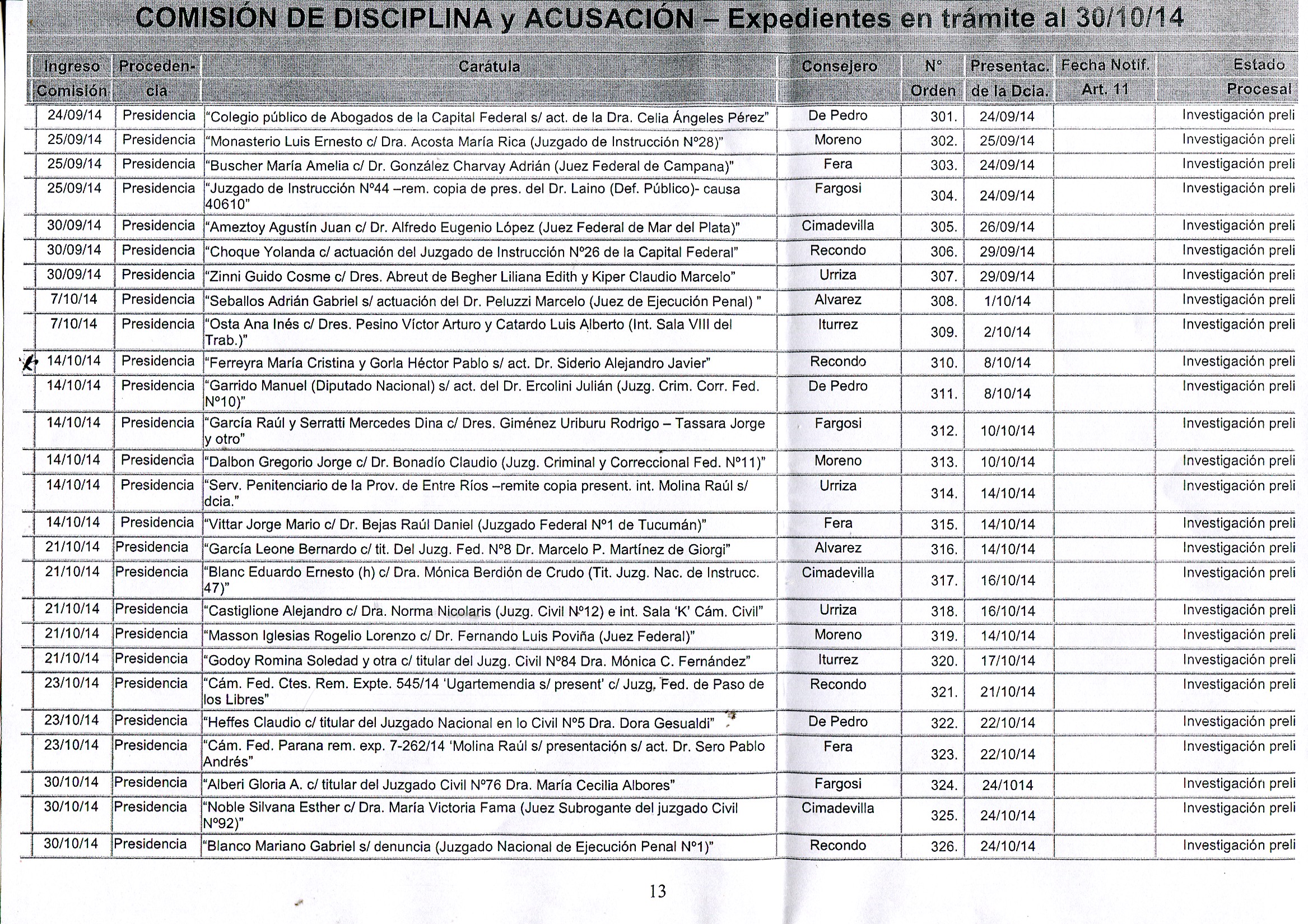 | 11 / 12 / 2014 | Consejo de la Magistratura | La nómina completa de las desestimaciones. |